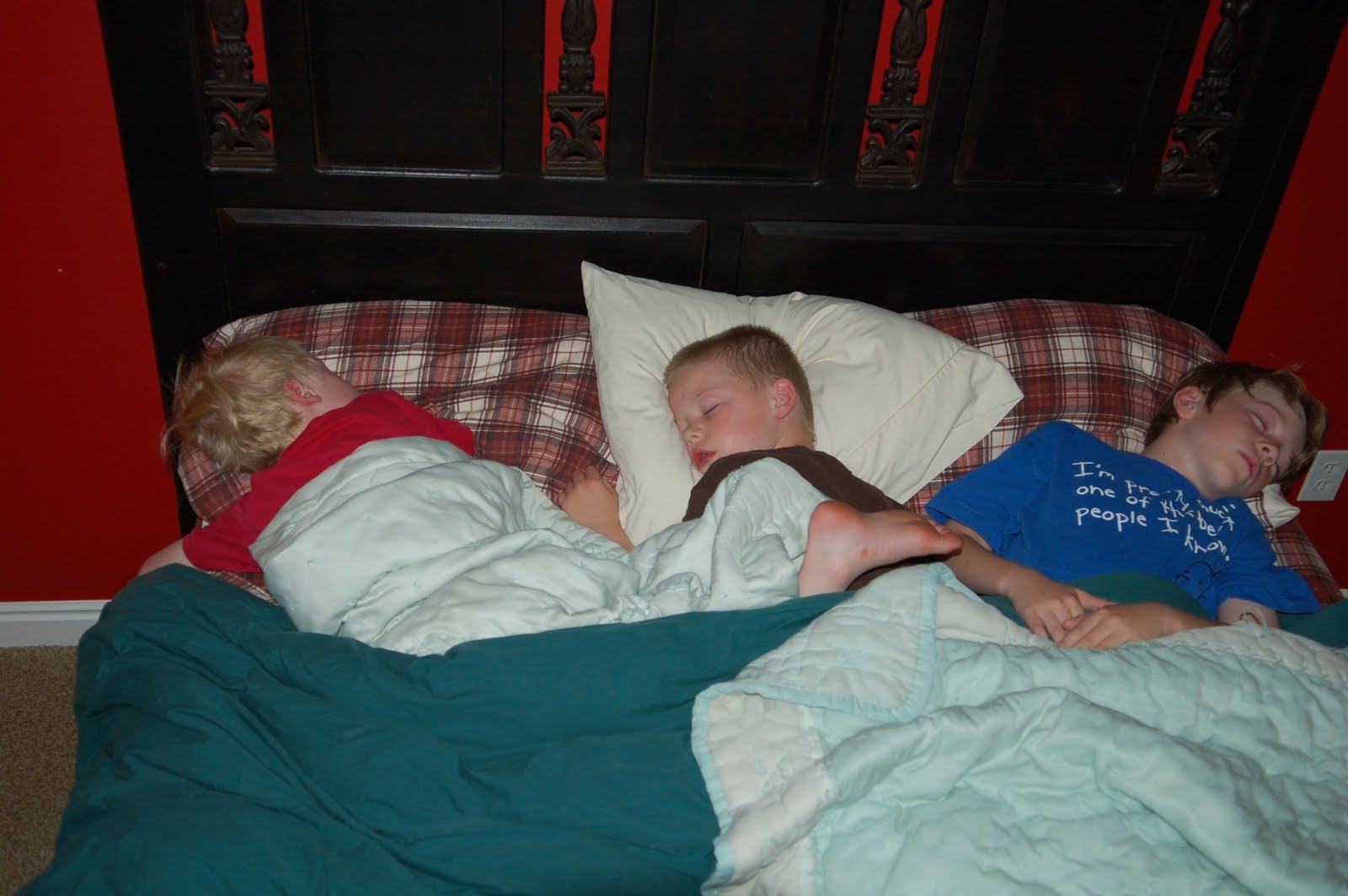 This is how the boys chose to spend their first night of summer break--all together in Will's bed. They quickly found out that it gets a bit more squishy in there the bigger they get (notice Will's foot on Jake's back). Halfway through the night Ben went to his own bed, but to them, they started it all off on the right track, together.