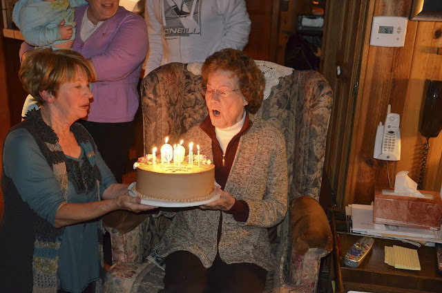 My grandma turned 90 years young last Thursday, January 13. When my mom and I realized a few months ago that Grandma's birthday was going to be a milestone, we decided to turn it into a party. A surprise party. I love surprises, and this was a very fun one to plan. Grandma knew I was coming down last week, but she thought it was just for a visit, and how convenient it was during her birthday.